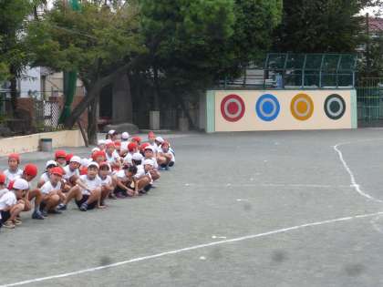 順番を待つ子たちは友だちに声援を贈ります。