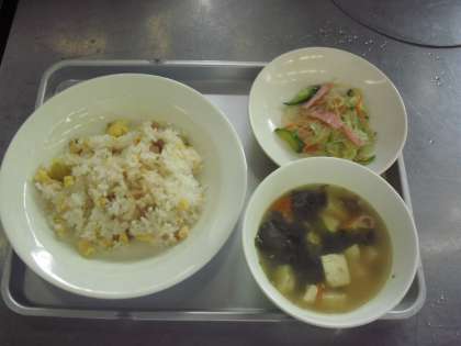 献立名:チャーハン、牛乳、わかめスープ、春雨サラダ