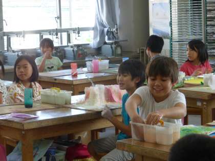 4年生が図工の学習で「自分いろがみ」に挑戦しました。