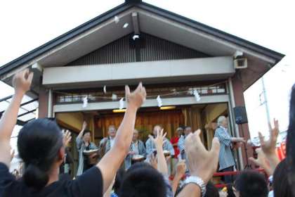若林町会の根岸会長も力いっぱいお餅をなげます。