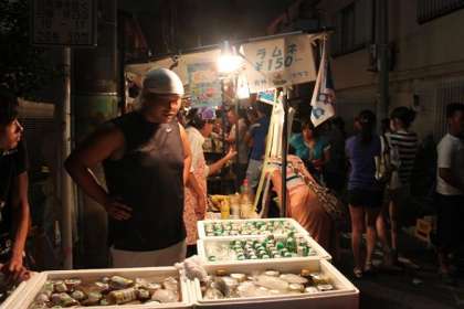 日が暮れると地域の方が出している屋台がにぎわってきました。