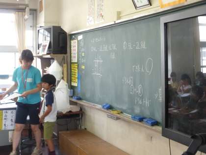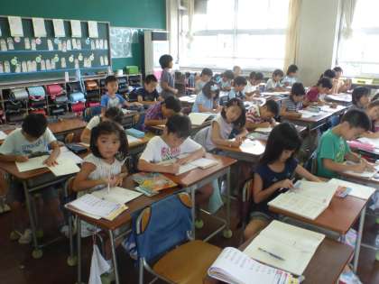 みんな黒板をよく見て、丁寧にノートをとっています。