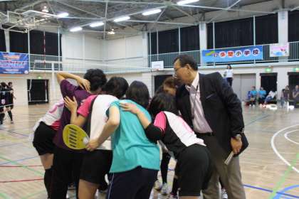 応援に来ていた校長先生も思わず円陣に加わります!