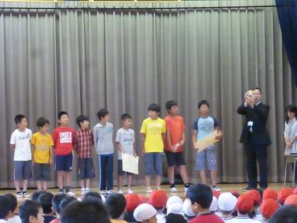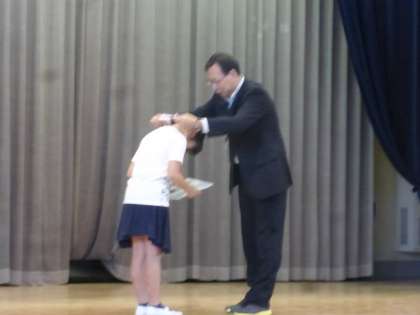 区の空手大会で同じく3位に入賞した子の表彰です。