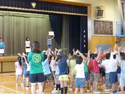 その後、児童会からクイズ形式で雨の日の過ごし方についてお知らせがありました。