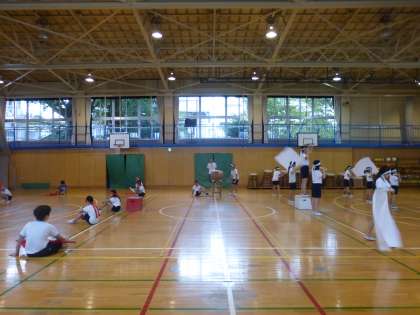 朝の体育館は応援の声と太鼓の音で、とても賑やか。