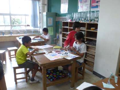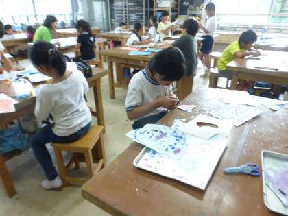 魚、へび、鳥・・・カラフルないきもので図工室がいっぱいになっていました。