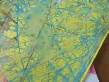絵の具で付けた模様を切り取って、世界に一つだけのいきものをつくります。