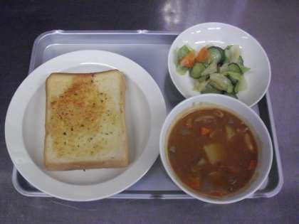 献立名 ガーリックトースト 牛乳 ビーンズシチュー 野菜のイタリアンドレッシングかけ