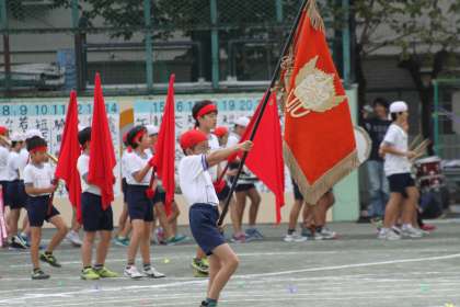 鼓笛隊の演奏に合わせて入場行進も堂々と、若小らしい運動会の始まりです。