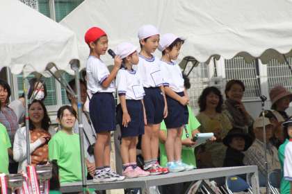 保護者の皆様からの拍手と声援を背に、ますますがんばる若小の子たち!