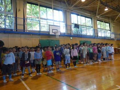 1年生から6年生まで、みんなで気持ちのよい朝を迎えました。
