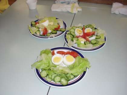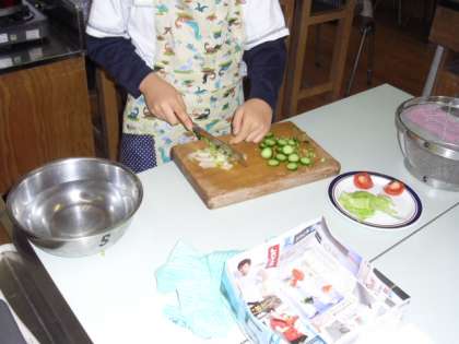 5年生がはじめて、調理実習で火を使った料理を作りました。ゆで卵の火加減や盛りつけの方法など自分自身で考え、とてもユニークなサラダが完成しました。みんな楽しく、そしてとてもおいしく食べることができました。