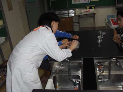 若林小学校の保護者の方は、このような実験の時によく支援員として来て下さいます。