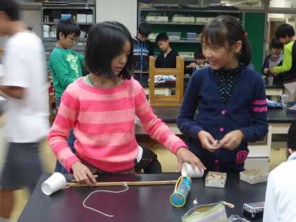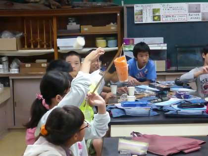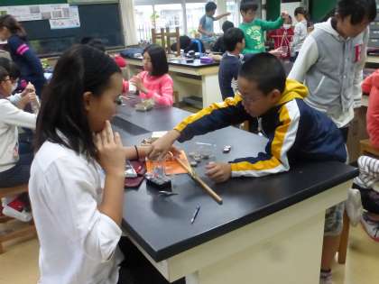6年生は理科の学習の一環で、てんびんをつかってものの重さを測りました。