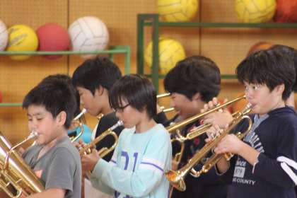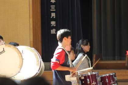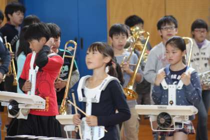 5、6年生で組織する若小伝統の鼓笛隊最後の合同練習が行われました。