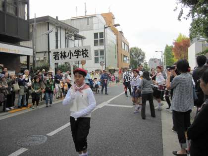 若林町会恒例の幕末維新祭りが開催され、26日(日)に5、6年生がパレードを行いました。