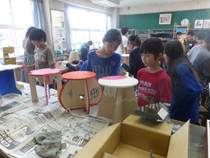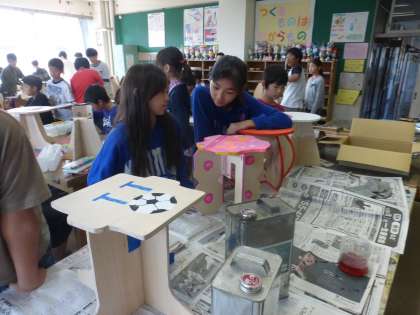6年生が図工の時間に制作をしているいすが、間もなく完成の時を迎えます。