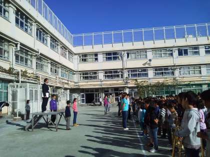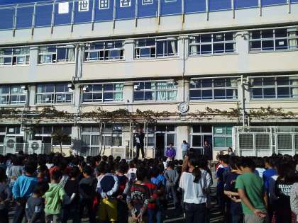 秋風の吹く校庭でしたが、子ども達はみんなしっかりとお話を聞けていました。