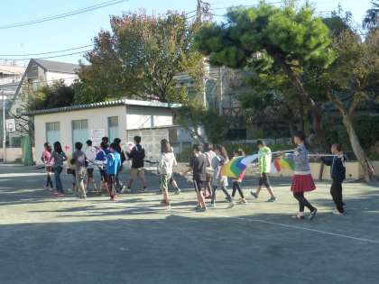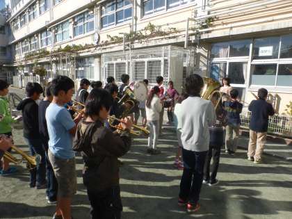 朝会の最後は6年生による鼓笛演奏の出番です。