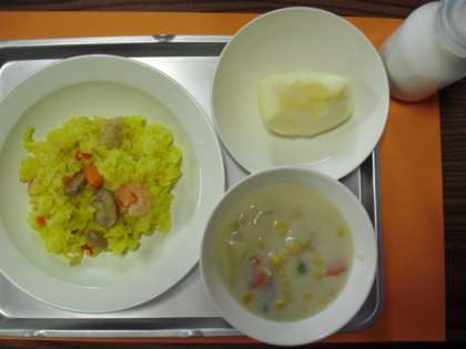 本日のパエリアは、本場と同じく、サワランで炊き込みました。