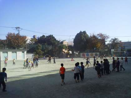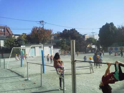気温は低めでしたが、日当たりのよい校庭では今日もたくさんの子たちが遊んでいました。