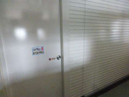 火災を想定した避難訓練ですので、防火扉が下りています。