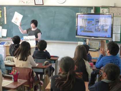 今日は講師の先生をお迎えして、5、6年生で英語の学習をしました。