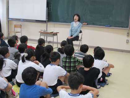 本日2時間目に4年生、4時間目に3年生において、お話会がありました。