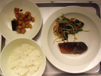 献立名;ごはん、牛乳、さばのみそ煮、おひたし、五目豆