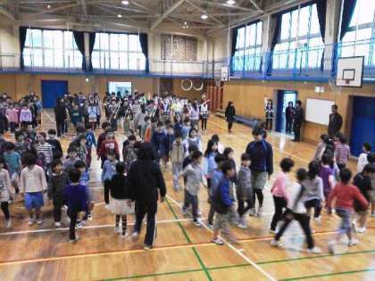6年生の演奏に合わせて全校児童が教室に戻っていきます。