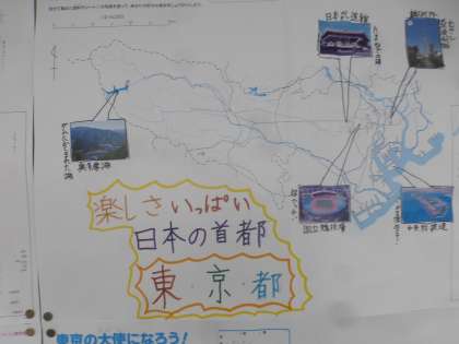 4年生は社会科で学習をした東京都について説明をするポスターをつくりました。