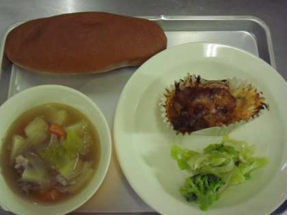 献立名 コッペパン 牛乳 魚のピザ風 ブロッコリーサラダ 田舎風スープ