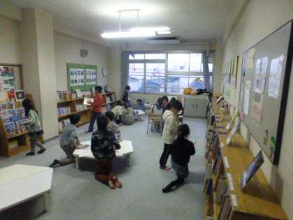 絵本コーナーも人気ですが、「9番」の本を手に取る子も増えています。