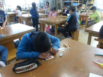 図工で初めて挑戦する立体的な迷路にみんなやる気満々です。