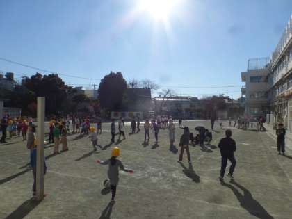 寒いにも元気に校庭遊び