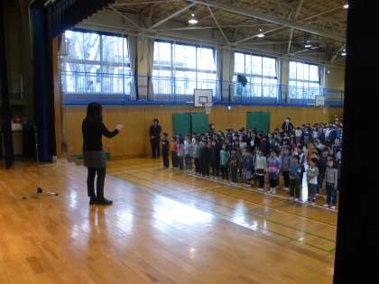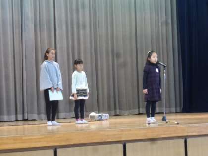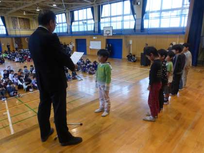 終業式の中では、1年生と5年生の子が、立派に児童代表の言葉を発表しました。