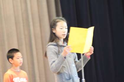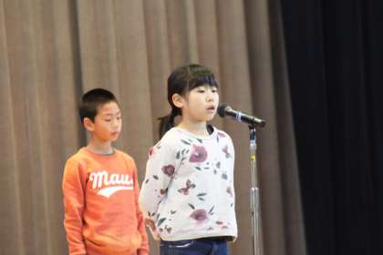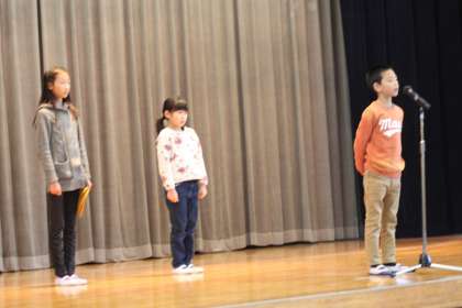 3学期は3年生と6年生の代表児童が、今年の目標や若小への想いを発表しました。