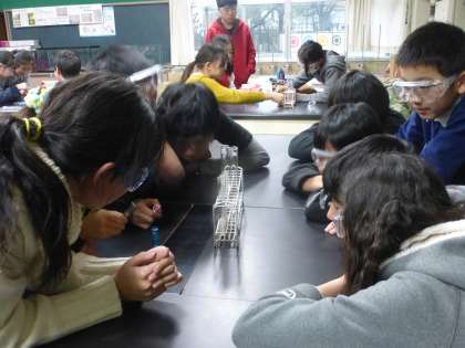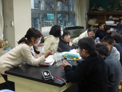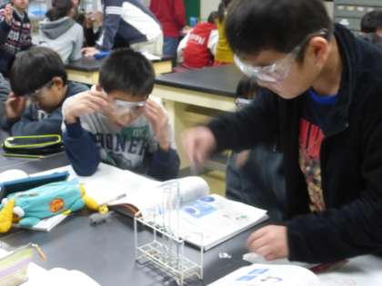 希塩酸を使ってアルミニウムと鉄の溶ける様子を観察しました。