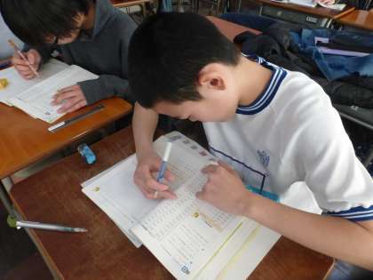 6年生が算数の時間に資料のまとめ方について学習をしています。