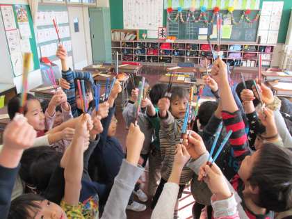 1年生が2学期につくったマイ箸が学校に到着しました。