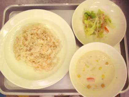 献立名:キャロットライス、ジョア、クリームスープ、フレンチサラダ