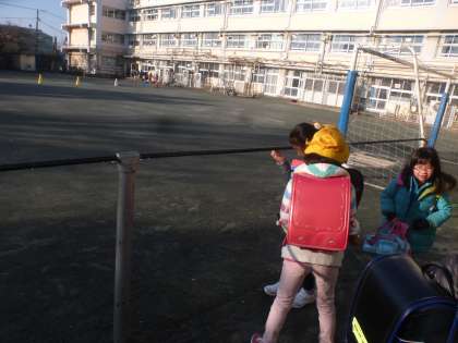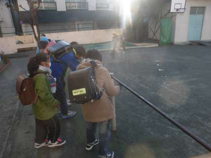 昨日降った霙のせいか、鉄棒にかわいいつららができていました。
