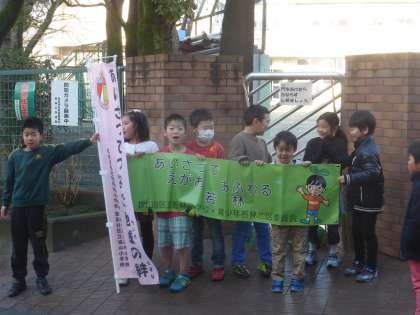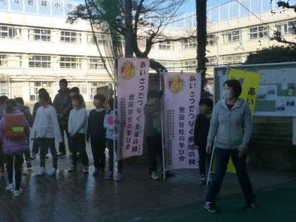 元気いっぱいの声に、登校してきた子たちも元気に返礼します。