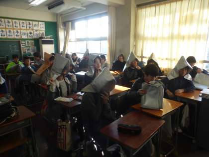 ところが朝読書の時間が始まり子どもたちが読み始めたところで避難訓練開始です。