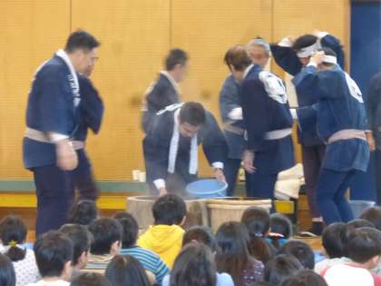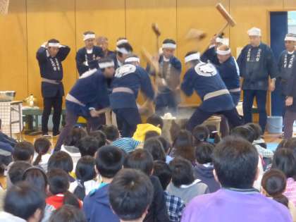 あっという間にお餅がつきあがる様子を観て、みんなやる気満々です。