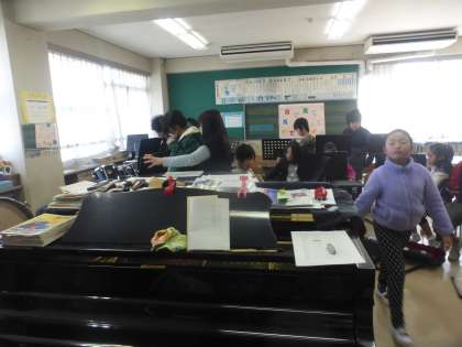 頼もしい6年生とフレッシュな4年生で意気上がる音楽室。