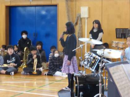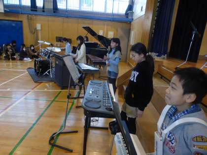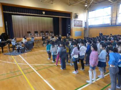 器楽クラブの子たちが音楽朝会の中で演奏を披露しました。