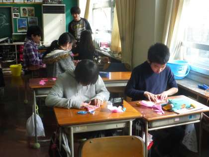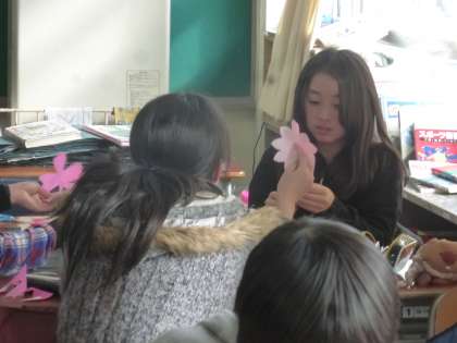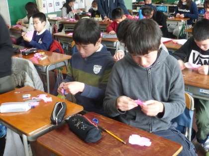 折り紙を折って、切って、素敵な形がいっぱいできています。
