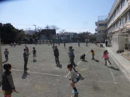 休み時間にはたくさんの子が校庭に出て、元気いっぱいに遊んでいます。